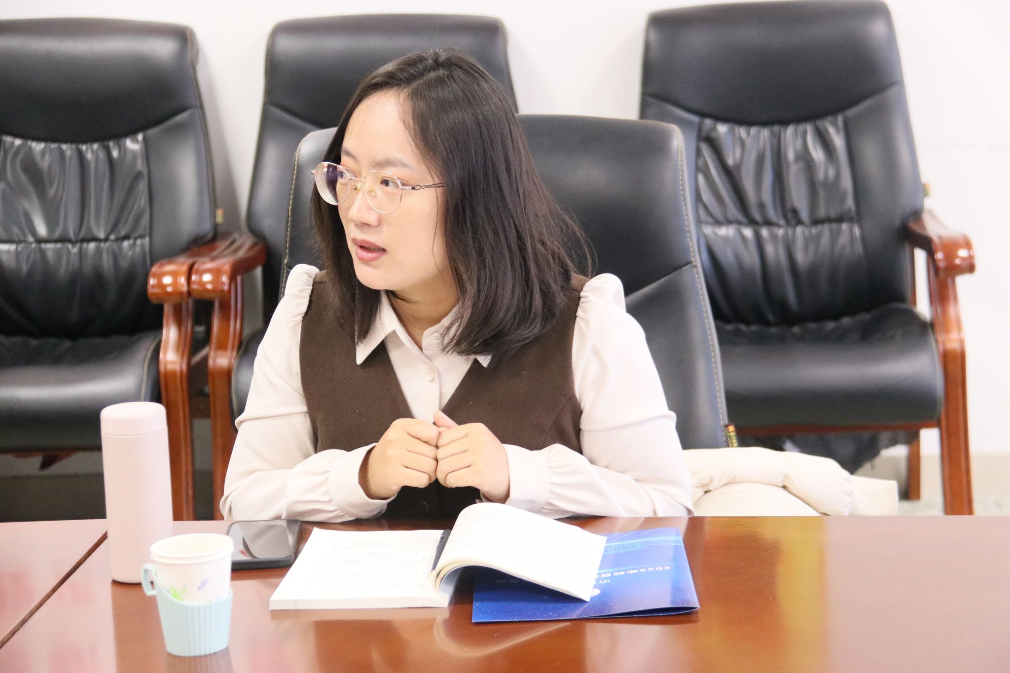 随后,我院青年教师代表周明珠、张芮昕结合入职成长经历,分享科研项目申报、教学能力提升等方面的体会。她们表示,学院的科研氛围、领导关怀与同事帮助让自己快速融入集体,参与教师培训、浙江大学思政教师骨干会议等活动,使自身教学与科研能力显著提升。学校完善的培养体系与丰厚的待遇保障,为青年人才成长筑牢后盾。互动交流环节,现场青年人才踊跃提问,围绕招聘门槛、考核标准、职业发展路径等与学院领导、教师代表热烈讨论。现场氛围务实高效,让青年人才对学院引进政策与发展环境有更清晰、更全面的认识。