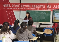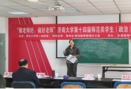 为深入贯彻落实新时代师范教育要求,全面提升思想政治教育专业师范生的教学实践能力与综合素养,济南大学马克思主义学院于2026年3月28日在马克思主义学院大会议室举办“做老师好,做好老师”济南大学第十四届师范类学生(政治)从业技能大赛。